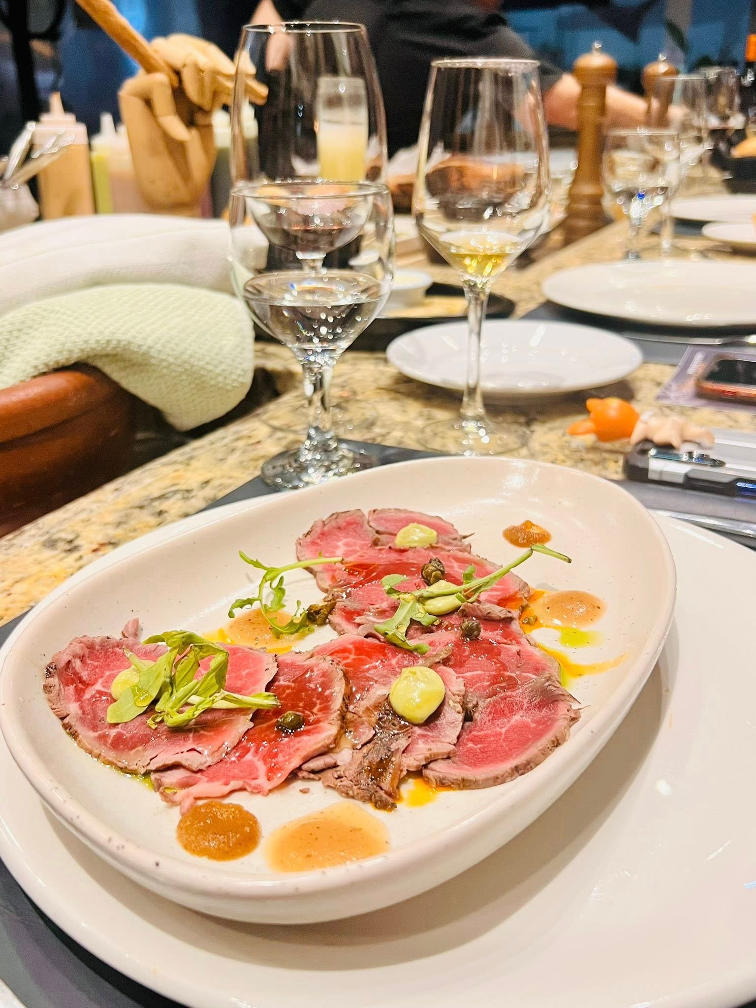 🍖 Second course: Thinly shaved filet smoked over BBQ woods — juicy, aromatic, unforgettable.
