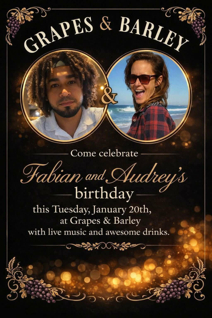 20jan5:00 pm10:00 pmFabian & Audrey Birthday Bash